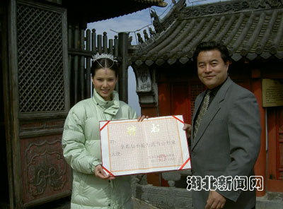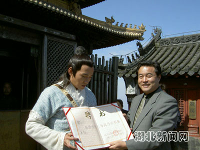 李、焦二人接過聘書說:“一定不辱使命,向中外宣傳武當山靈氣,為讓武當山連同電視劇《武當》走向世界鞠躬盡力!”(郭占柱攝影報道)