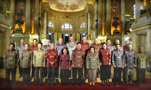 中新網(wǎng)10月21日電 綜合央視國(guó)際報(bào)道,今天上午,按照慣例,在泰國(guó)曼谷出席APEC領(lǐng)導(dǎo)人非正式會(huì)議的21個(gè)成員的領(lǐng)導(dǎo)人身著泰國(guó)民族服裝拍攝“全家!。