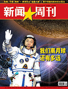 中新網(wǎng)10月22日電 楊利偉的一小步,是中國的一大步。這一步中國跨了很多年!拔覀冸x月球還有多遠(yuǎn)?”這是下周出版的總第153期中國《新聞周刊》在封面提出的問句。