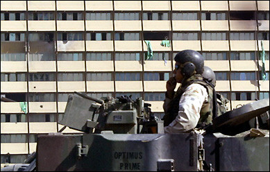 象征美軍權(quán)力的拉希德酒店遭明目張膽地襲擊,進(jìn)一步動搖美國穩(wěn)定伊拉克的努力,伊拉克人指這與華府不把權(quán)力交還給伊拉克人有關(guān)。(據(jù)香港文匯報(bào))