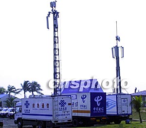 在博鰲亞洲論壇國(guó)際會(huì)議中心廣場(chǎng),只見中國(guó)電信、中國(guó)移動(dòng)、中國(guó)聯(lián)通三大電信運(yùn)營(yíng)商的保障車,齊齊停在停車場(chǎng),旁邊設(shè)置了信號(hào)加強(qiáng)站,他們將確保論壇期間通訊二十四小時(shí)暢通。