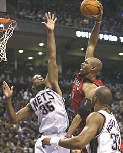 上半時(shí)開始后不久網(wǎng)隊(duì)就在基德的帶領(lǐng)下向猛龍隊(duì)發(fā)難,領(lǐng)先分?jǐn)?shù)一度達(dá)到10分。第一節(jié),新澤西21-17領(lǐng)先四分。第二節(jié),網(wǎng)隊(duì)26-21繼續(xù)領(lǐng)先。