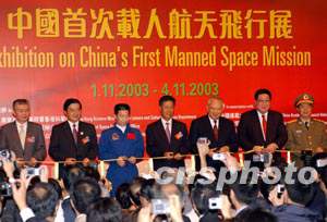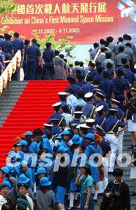 中新社香港十一月一日電(記者黃少華)今天上午九時(shí),在莊嚴(yán)的國(guó)歌聲中,在約四百名出席人士行注目禮的國(guó)旗和香港特區(qū)區(qū)旗交相輝映下,“中國(guó)首次載人航天飛行展”在香港科學(xué)館隆重開(kāi)幕。香港市民亦開(kāi)始了為期四天的與“神舟”飛船航天物品的親密接觸。