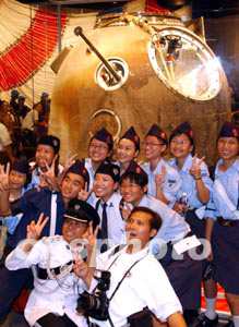 展覽由今天上午起至四日下午舉行,市民可一睹神舟五號(hào)宇宙飛船的返回艙、神舟五號(hào)宇宙飛船的著陸降落傘、宇宙飛行服、太空食品、火箭及飛船模型等,以了解中國(guó)載人航天工程、神舟五號(hào)宇宙飛船及航天員的訓(xùn)練。
