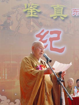 揚州市市長季建業(yè)在會上致辭。國家宗教事務局局長葉小文、日本奈良唐招提寺益田快范長老、臺灣佛光山開山宗長星云、中日友好協(xié)會副會長文遲等講了話。揚州大明寺方丈能修也在會上致了辭。