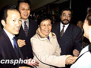 據(jù)說行前陳玉杰已經(jīng)表示,感謝僑胞的盛情,但希望大家不要花費精力和時間搞歡迎和招待活動,她此行主要是看望僑胞、傾聽僑胞心聲。盡管如此,今天傍晚除了中國駐紐約總領(lǐng)事劉碧偉等官員前往迎接外,仍有三十多位華僑華人手持鮮花到機場歡迎,其中不少人曾在北京與陳玉杰見過面,對其務(wù)實的工作作風甚為稱贊。