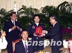 中國(guó)首次載人航天代表團(tuán)今天中午抵達(dá)澳門后,中央駐澳聯(lián)絡(luò)辦即為代表團(tuán)接風(fēng)洗塵。下午,澳門特區(qū)政府在金蓮花廣場(chǎng)舉行盛大歡迎儀式,隨即舉行“中國(guó)首次載人航天飛行展”開幕儀式。之后,代表團(tuán)馬不停蹄趕往旅游塔會(huì)展中心,舉行中國(guó)載人航天工程報(bào)告會(huì)。晚上,楊利偉一行在出席特區(qū)政府的歡迎晚宴后,將參加在氹仔賽馬場(chǎng)舉行的“圓千年飛天夢(mèng)晚會(huì)”,楊利偉將與澳門中小學(xué)生展開真情對(duì)話,分享首次航天心得。