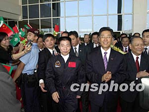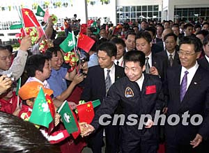 應(yīng)澳門(mén)特區(qū)政府的邀請(qǐng),國(guó)家首飛航天員楊利偉及中國(guó)載人航天飛行代表團(tuán)五日中午從香港乘船抵達(dá)澳門(mén)進(jìn)行訪(fǎng)問(wèn),澳門(mén)各界數(shù)百人在外港碼頭夾道熱烈歡迎。中新社記者:李剛