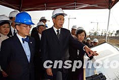 十一月五日,國務院副總理曾培炎在香港考察迪斯尼樂園工地。中新社記者:潘索菲