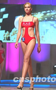 俄羅斯佳麗維拉在比賽中展示泳裝。中新社記者 毛建軍 攝影
