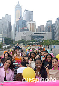 參加“第53屆世界小姐”選美大賽的110個國家和地區(qū)的佳麗,十一月九日乘車巡游香港島。中新社記者:錢興強