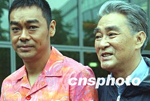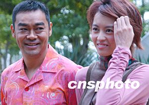 香港明星劉青云、梁詠琪十一月十日在香港舉行的電影《絕世好賓》開鏡拜神儀式上。中新社記者:錢興強