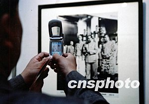 為紀(jì)念一代偉人毛澤東誕辰一百一十周年,曾在北京中南海毛澤東身邊任專職攝影師的呂厚民先生,十一月十一日在山東省城濟(jì)南東方現(xiàn)代藝術(shù)館舉辦了《偉人毛澤東》攝影作品展。一位中年人,舉起可拍照的手機(jī)拍攝下珍貴的作品。作者:郝帆