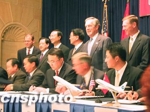 中新網(wǎng)華盛頓11月13日電(記者余東暉)中國與美國于美國時間十二日分別在華盛頓和底特律簽署了三個大宗采購合同,總價值超過六十億美元。