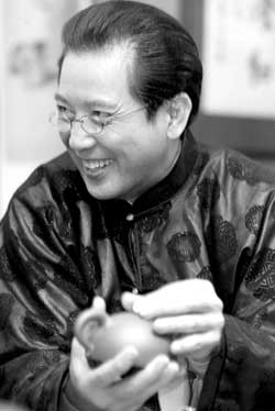 秦漢手中的壺光滑精巧,一眼就能看出是件極品。秦漢說:“能做出這樣的作品,除了要有精良的技藝之外,而且和人的氣質(zhì)、做人的修養(yǎng)有很大關(guān)系。這把壺手感細(xì)膩,曲線優(yōu)美,摸上去像是人體的肌膚!鼻貪h介紹,因?yàn)槊堪褖囟挤浅U滟F,因此在拍戲過程中大家都小心翼翼,有時甚至端著壺的手都在不停地顫抖。