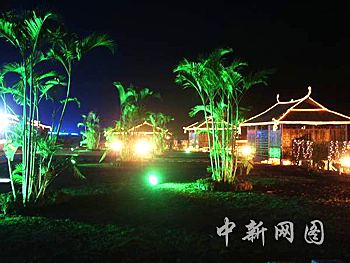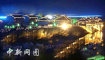 投資100萬(wàn)元的花博會(huì)夜景工程日前竣工。圖為花博園濱溪茶文化走廊夜景。蔡文原攝