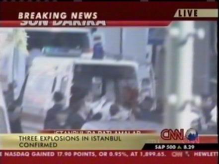 北京時間11月20日下午,位于土耳其伊斯坦布爾北部的土耳其匯豐銀行總部附近發(fā)生兩次爆炸,部分銀行建筑被摧毀。此后英國駐伊斯坦布爾領(lǐng)事館以及一個居民區(qū)和一座清真寺也遭到襲擊。圖為爆炸中受傷人員被抬上救護車。(春風(fēng))