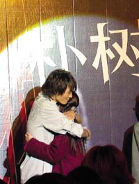 小舞臺(tái)的背板中躥起了耀眼的煙火,樸樹在歌迷的淚眼婆娑中道別,瘋狂的女歌迷再也按捺不住內(nèi)心的激動(dòng),沖破保安的阻攔撲向了偶像的懷抱……突出重圍的樸樹對(duì)嘉賓老狼說(shuō)的第一句話就是:“剛才的場(chǎng)面嚇壞我了,現(xiàn)在真想唱你的那首歌《虎口脫險(xiǎn)》!(記者王錚)
