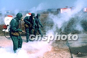 十一月下旬,中國海軍北海艦隊(duì)航空兵某機(jī)場進(jìn)行快速開辟直升機(jī)野戰(zhàn)機(jī)場預(yù)案演練,加強(qiáng)隊(duì)伍應(yīng)對突發(fā)事件的能力。圖為防化小分隊(duì)對遭“轟炸”的目標(biāo)進(jìn)行洗消作業(yè)演練,以備新野戰(zhàn)機(jī)場的開辟。作者:鄢潤波