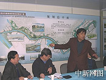 圖:采風(fēng)團(tuán)聽取秦淮河整治工程介紹