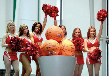 火箭啦啦隊(duì)的“辣妹”們11月25日在紅牛飲料北京簽約式上表演。紅牛飲料在中國(guó)成為NBA官方指定飲料。