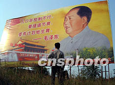 國(guó)道三二三線廣東韶關(guān)南雄市城區(qū)南面路邊,新近豎起了一塊大型毛澤東語(yǔ)錄牌。一九五七年三月,毛澤東在最高國(guó)務(wù)會(huì)議第十一次會(huì)議上說:“要提倡節(jié)育,要有計(jì)劃地生育。”作者:馮昶