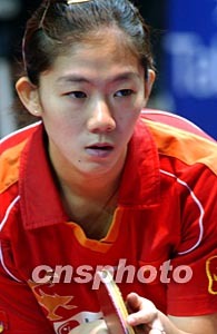 二零零三年女子世界杯乒乓球賽十二月十七日在香港舉行,中國參賽選手牛劍鋒在初賽上以4:0輕取日本選手梅村禮。中新社記者:錢興強