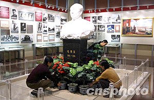2003年12月26日是毛澤東誕辰110周年,位于北京天安門(mén)廣場(chǎng)上的毛主席紀(jì)念堂將舉辦多項(xiàng)活動(dòng)隆重紀(jì)念,紀(jì)念堂中的“毛澤東展室”經(jīng)過(guò)精心布置準(zhǔn)備接待參觀(guān)者。中新社記者:任晨鳴