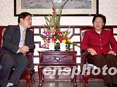 參加“2003香港青年江蘇行”活動(dòng)的香港特別行政區(qū)立法會(huì)主席范徐麗泰,22日到南京航空航天大學(xué)與學(xué)生交流并與校長(zhǎng)交流。作者:丁東升