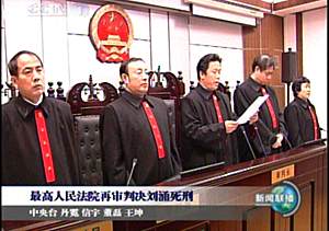 中新網(wǎng)12月22日電 最高人民法院今天(22日)上午在遼寧省錦州市中級(jí)人民法院對(duì)劉涌組織、領(lǐng)導(dǎo)黑社會(huì)性質(zhì)組織一案經(jīng)再審后作出判決,判處劉涌死刑。宣判后,遼寧省鐵嶺市中級(jí)人民法院遵照最高人民法院下達(dá)的執(zhí)行死刑命令,當(dāng)日對(duì)劉涌執(zhí)行了死刑。