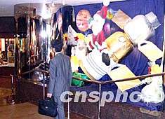 隨著“神舟五號(hào)”載人飛船的成功返回,香港也曾掀起一股航空熱。在商場圣誕裝飾中,以圣誕老人乘飛船亦成為香港圣誕裝飾一景。中新社記者:譚達(dá)明