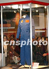 特備展覽“中國首次載人航天飛行展Ⅱ--給香港的禮物”十二月二十三日在香港科學(xué)館開幕,圖為航天英雄楊利偉的工作訓(xùn)練服。中新社記者:錢興強(qiáng)