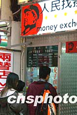 十二月二十六日是中國已故毛澤東主席誕辰110周年紀(jì)念日,在香港繁華的銅鑼灣街頭,一家兩替店懸掛的毛澤東像顯得引人注目。中新社記者:錢興強