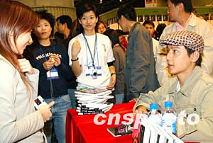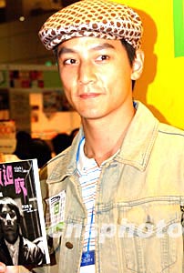 香港藝員吳彥祖十二月二十六日在香港會(huì)展中心舉行的“書(shū)節(jié)2003”上,為電影原著小說(shuō)《妖夜回廊》簽名。中新社記者:錢興強(qiáng)