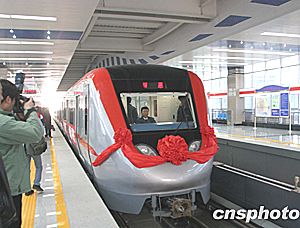 十二月二十七日,北京地鐵八通線(八王墳-----通州)正式通車試運(yùn)行。全長19公里的輕軌鐵路沿途連接了北京CBD商務(wù)區(qū)與東部遠(yuǎn)郊區(qū)發(fā)展帶中心城市通州區(qū),可以極大地緩解這一地區(qū)的交通緊張狀況。中新社記者:史利