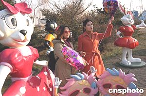 元旦、春節(jié)即將來臨,北京石景山游樂園近期增設(shè)了卡通樂園,許多形象逼真可愛的卡通將成為小朋友的新愛。中新社記者:任海霞
