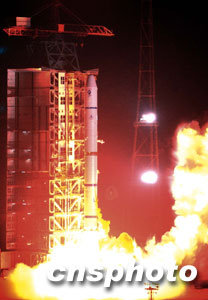 北京時間三十日凌晨三時許,中國“雙星計劃”的第一顆衛(wèi)星“探測一號”在西昌衛(wèi)星發(fā)射中心由“長征二號丙”改進(jìn)型運(yùn)載火箭發(fā)射升空。至此,二00三年中國六次航天發(fā)射全部告捷,也為中國航天年畫上一個圓滿的句號。本次衛(wèi)星發(fā)射是中國運(yùn)載火箭迄今為止最高的一次飛行,“探測一號”也因此成為中國目前軌道距地球最遠(yuǎn)的一顆衛(wèi)星。 中新社記者 張煒 攝
