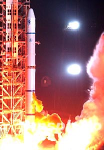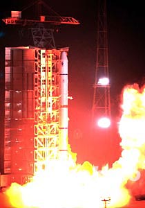 十二月三十日凌晨三時零六分,在西昌衛(wèi)星發(fā)射中心,“地球空間雙星探測計劃”(簡稱雙星計劃)中的探測一號衛(wèi)星由長征二號丙改進型運載火箭(CZ-2C/SM)發(fā)射升空!半p星計劃”是首個由中國提出的空間探測國際合作計劃。探測二號衛(wèi)星將于半年后發(fā)射。中新社記者:張煒