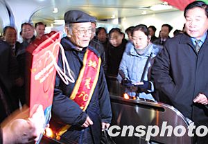 北京地鐵13號(hào)線自動(dòng)收費(fèi)系統(tǒng)(簡稱AFC系統(tǒng))三十一日早晨五點(diǎn)半正式開通,作為新系統(tǒng)的第一位乘客七十歲的老人洪先生身披紅色綬帶通過了地鐵自動(dòng)檢票閘機(jī)口。中新社記者:廖文靜