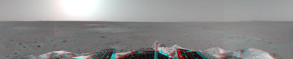 “勇氣”號發(fā)回首張火星三維全景圖像