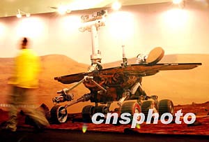美國“勇氣”號(hào)機(jī)器人漫游者日前成功登陸火星后,北京一商廈適時(shí)展出相關(guān)照片,廣受市民歡迎。中新社記者:武仲林