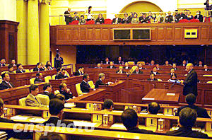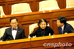 香港特區(qū)政府政務(wù)司長曾蔭權(quán)(左)、律政司長梁愛詩(中)、政制事務(wù)局長林瑞麟1月7日出席立法會,聽取行政長官董建華發(fā)表2004年施政報告。作者:洪少葵
