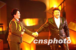 中國文聯(lián)十一日在北京舉辦《百花迎春--中國文學藝術界2004春節(jié)大聯(lián)歡》活動,著名歌手韓紅和母親雍西同臺演唱《翻身農奴把歌唱》。中新社記者:王瑤