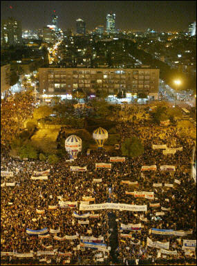 同樣是上周日,約10萬(wàn)名以色列人在特拉維夫集會(huì)示威,反對(duì)沙龍清除約旦河西岸的部分猶太定居點(diǎn)。