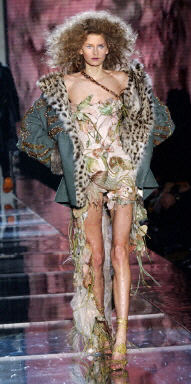 1月11日,2004/2005年意大利米蘭秋冬時(shí)裝展開場(chǎng),本次時(shí)裝展將在本月15日結(jié)束。圖為模特展示設(shè)計(jì)師Roberto Cavalli的作品。