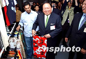 “香港時裝節(jié)秋冬系列2004及香港國際時尚薈萃2004”,1月13日至16日在會展中心舉行,圖為香港民政事務(wù)局局長何志平[中]、貿(mào)發(fā)局成衣業(yè)咨詢委員會主席鄭維志及貿(mào)發(fā)局總裁施祖祥[右]主持展覽開幕典禮。