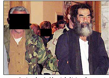 報道說,在他被捕后,坐在舒服的椅子上,被周圍的閃光燈猛拍時,他的恐懼毫無掩飾的流露了出來。這個伊拉克前總統(tǒng)在以前運動時,右眼上方留有一個傷口,當他于12月13日被美國格斗小組從洞中拖出來的時候,那個傷口還在老地方。(天石/薛力)