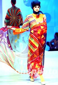 來自印度尼西亞的時裝設計師Iva Lativa ,1月15日在香港舉行的“香港國際時裝設計師表演”專場上,推出別具特色的民族服飾系列。作者:洪少葵