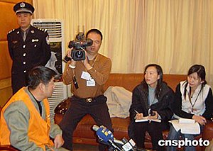 涉嫌從事間諜活動(dòng)的臺(tái)灣居民王長(zhǎng)勇一月十六日在福建省第二看守所接受中國(guó)內(nèi)地及臺(tái)灣香港、日本記者采訪。王長(zhǎng)勇二00二年加入臺(tái)灣間諜組織,曾多次潛入福建軍事要地搜集情報(bào)。作者:陳悅