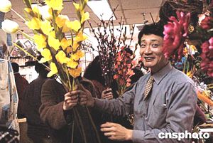 北京禮品工藝花卉市場在春節(jié)前夕生意異常火爆,銷售工藝花卉的攤主忙得樂不可支。中新社記者:鄒憲